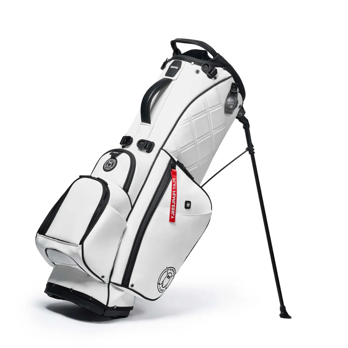 Tillverkad i slitstarkt premium PU-läder med kolfiberben ger den ett elegant och robust intryck. Den 7-delade toppen med sammetsklädda fullängdsavdelare skyddar dina klubbor, medan det extra stora putterfacket rymmer även tjockare grepp. Bagen har både enkel och dubbel bärsele som enkelt kan justeras eller bytas beroende på hur du vill bära den. De magnetiska fickorna ger snabb åtkomst till din avståndsmätare, och flera kylfodrade fack håller dina drycker kalla under rundan.Ghost Anyday erbjuder dessutom gott om utrymme för värdesaker och tillbehör, inklusive avtagbar bollfickspanel för personlig brodyr. En stilren bag för dig som vill ha allt – funktion, komfort och förstklassig design i ett.