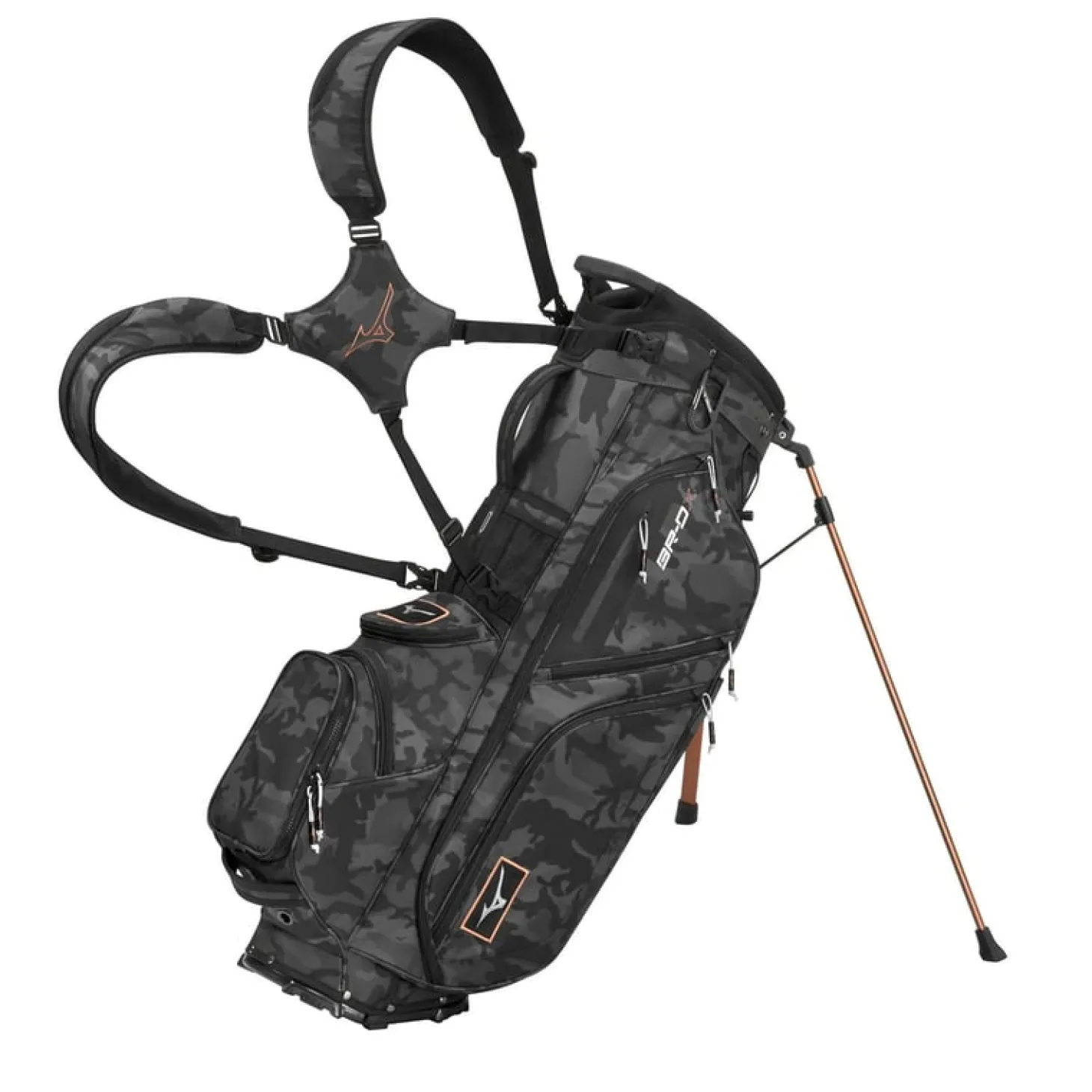 Mizuno BR-D är en hybrid standbag som kombinerar mångsidighet med praktiska funktioner. Den har 14 fickor för att rymma allt du behöver, inklusive en stor kylficka för extra varma dagar. Dess breda och stabila ben gör att den står stadigt när du använder den som en bärbag, och den har en snabbkopplad, avtagbar axelrem för de dagar du föredrar att gå banan. Med avancerade teknologier som Ultra-stabila breda ben, dubbel axelrem med snabbkopplingsklämmor, en fullängds klädficka, värdefickor med fleece och vattentäta dragkedjor, samt en magnetstängd ficka med fleecefoder, är den utformad för optimal förvaring och bekvämlighet. Den har dessutom en Loop-Velcro-handskfäste, avtagbar bollficka, stor isolerad kylficka med dräneringshål och en paraplyhållare, vilket gör Mizuno BR-D till det perfekta valet för alla utmaningar på golfbanan.