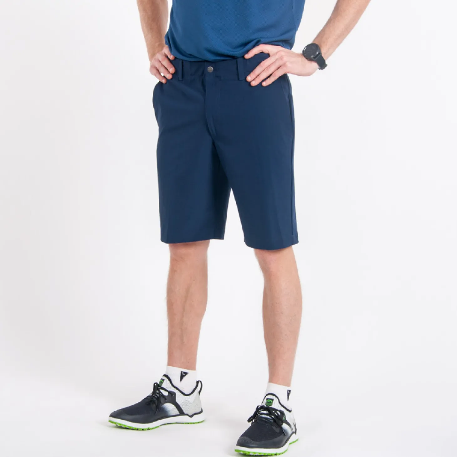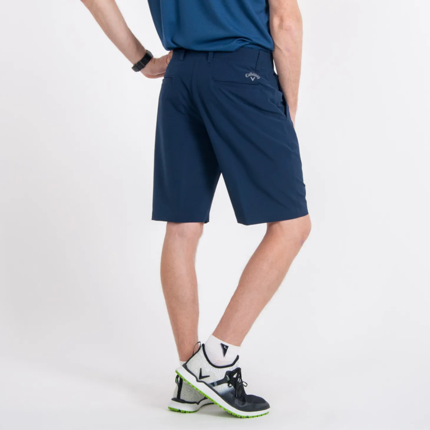 Callaway Chev Tech är tekniska lättviktshorts med med stretch och hög andningsförmåga. Två framfickor och två bakfickor samt ton i ton Callaway tourlogga ovanför höger bakficka. 89% polyester, 11% spandex.