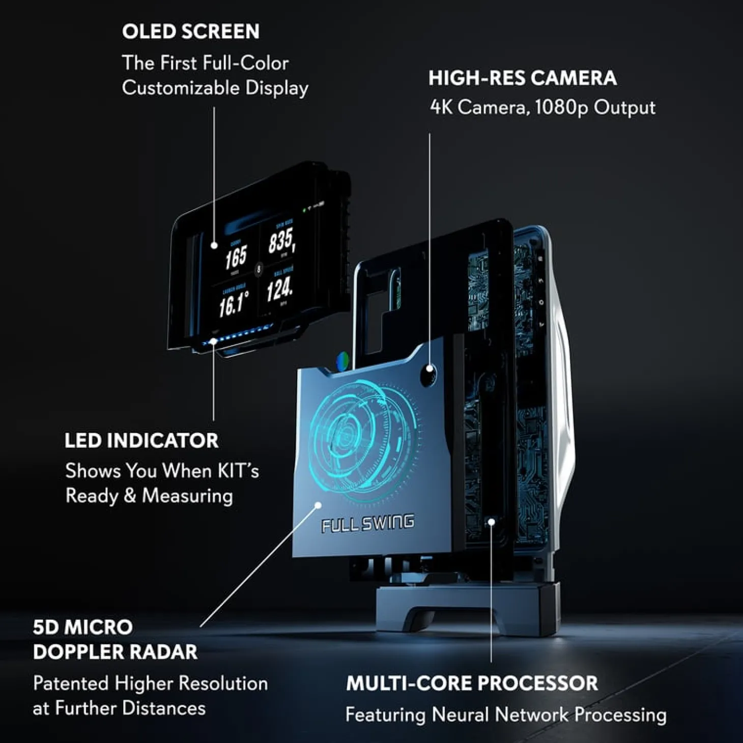 KIT är kompatibel med en mängd träningsmiljöer och erbjuder en flexibel lösning för både inomhus- och utomhusträning. Enheten har en robust konstruktion och är lätt att installera, vilket gör att du kan använda den oavsett om du tränar hemma, på rangen eller på golfbanan. Med lång batteritid och bärbar design kan den enkelt transporteras och användas var du än befinner dig.En av de mest imponerande funktionerna i Full Swing KIT är dess integrerade höghastighetskamera som fångar varje slag i HD-kvalitet. Detta gör det möjligt för användaren att se sitt slag i detalj och analysera varje aspekt av sin teknik, vilket kan vara avgörande för att förbättra spelet. KIT kan användas tillsammans med Full Swings app, som ger användaren omedelbar feedback och en komplett översikt av data för varje slag. Appen är enkel att använda och erbjuder användaren ett intuitivt gränssnitt för att följa sin utveckling över tid. Förutom den tekniska analysen erbjuder KIT tillgång till över 500 virtuella golfbanor, vilket gör att spelare kan öva på realistiska banor från hela världen utan att lämna sitt hem. Detta är särskilt värdefullt för spelare som vill träna på specifika banor inför tävlingar eller förbättra sitt spel på olika typer av hål och underlag. Möjligheten att spela virtuella rundor gör träningen både rolig och givande, samtidigt som den håller motivationen uppe. KIT Launch Monitor har blivit populär bland professionella golfare tack vare dess höga noggrannhet och avancerade funktioner, men den är även ett utmärkt verktyg för golfare på alla nivåer. Den är enkel att använda och kräver minimal uppsättning, vilket gör att golfare snabbt kan komma igång med sin träning. För golfare som tar sitt spel på allvar och vill förbättra sin teknik är Full Swing KIT ett ovärderligt verktyg som ger detaljerad insikt i varje aspekt av slaget. Full Swing KIT har också en flexibel design och är kompatibel med flera simulatorplattformar och träningsappar. Detta gör att användaren kan välja de program som passar bäst för deras träningsmål och behov. Genom att kombinera KIT med olika appar kan golfare skräddarsy sin träning och få maximal nytta av den data och feedback som enheten erbjuder. Enheten är även uppdateringsbar, vilket innebär att Full Swing kontinuerligt förbättrar programvaran och funktionerna för att säkerställa att användarna får den senaste tekniken och bästa möjliga upplevelse