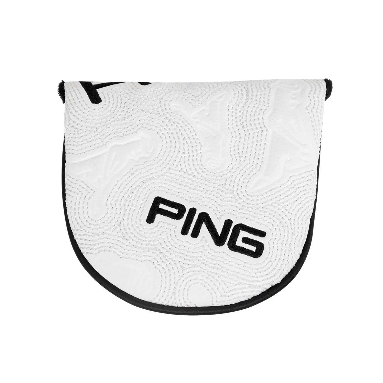 Ge din malletputter ett stilfullt skydd med Ping Icon Headcover i vitt. Det genomtänkta utförandet med Mr. PING-karaktären och präglade PING-logotyper ger en exklusiv känsla, medan det mjuka velourfodret skyddar klubbhuvudet från slitage. Den skräddarsydda passformen ser till att headcovern sitter säkert utan att vara svår att ta av eller på. Ett utmärkt val för den hängivne Ping-fantasten!