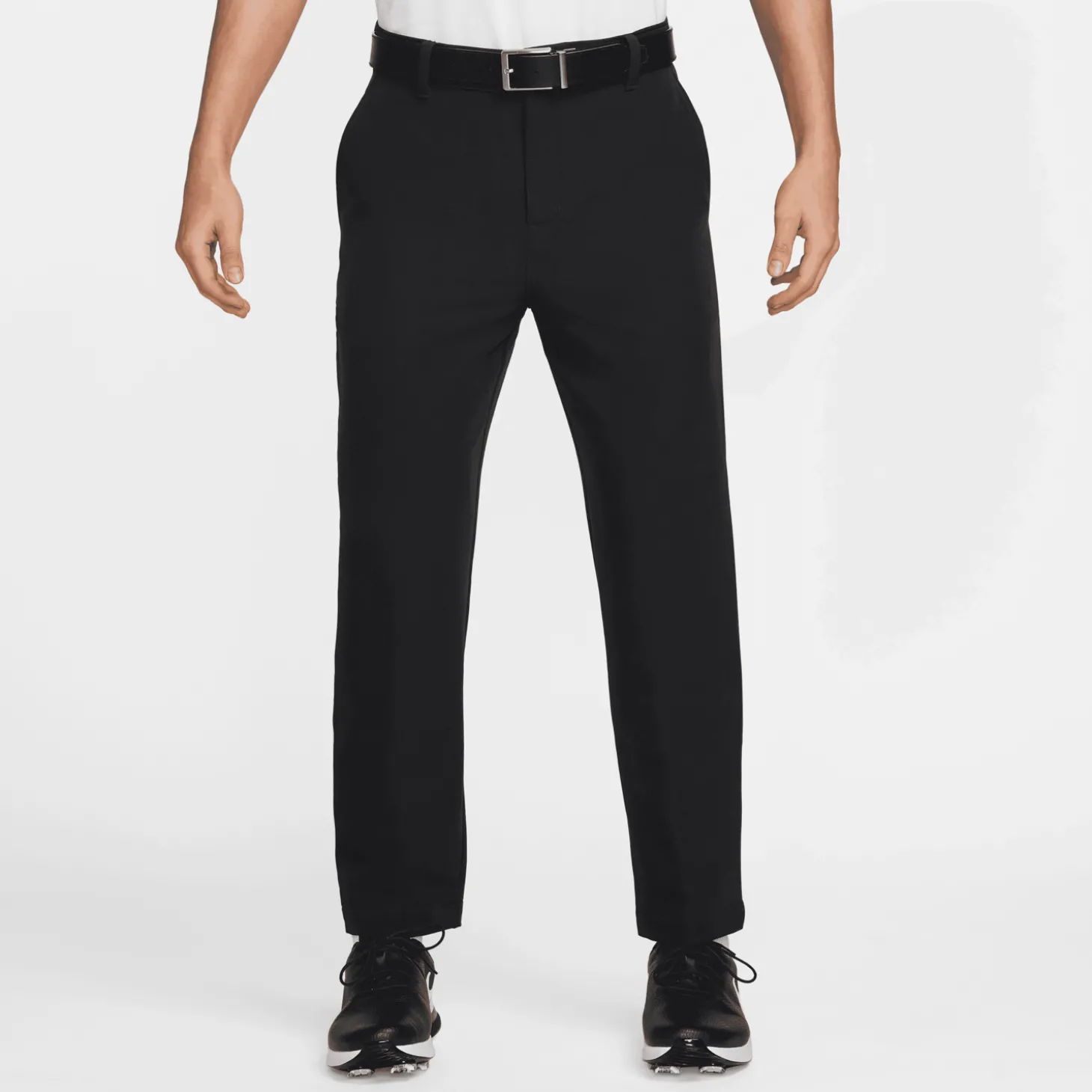 Den vattenavvisande finishen hjälper till att hålla bäraren torr i fuktiga förhållanden, medan det fyrvägsstretchiga vävtyget ger gott om flexibilitet för att svinga fritt och bekvämt.Byxbenen är designade att sluta strax ovanför ankeln, vilket gör dem mångsidiga att bära med både låga och höga skor. Sid- och bakfickor ger gott om förvaringsutrymme för småsaker under rundan.Detaljerna inkluderar framtill dragkedja med knappstängning, hällor för bälte samt en materialblandning av 95 % polyester och 5 % spandex i kroppen och 100 % polyester i fickpåsarna.
