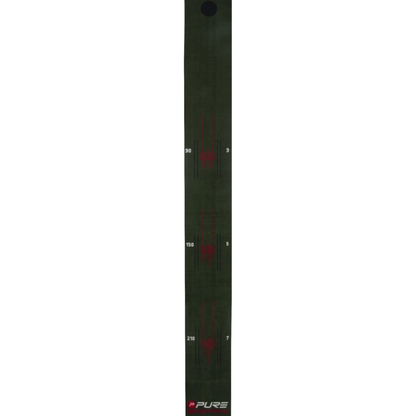 Puttmatta 275×30 cm för rolig och effektiv putträning hemma eller på kontoret är den perfekta puttmattan utrustad med markeringar för att hjälpa till att vägleda och forma en perfekt putt från avstånden 213 cm, 152 cm och 91 cm på en jämn rullande yta med gummerat undersida. Paketet inkluderar även putting trainer, ett redskap där du kan träna för att hitta den optimala hastigheten på din putt.