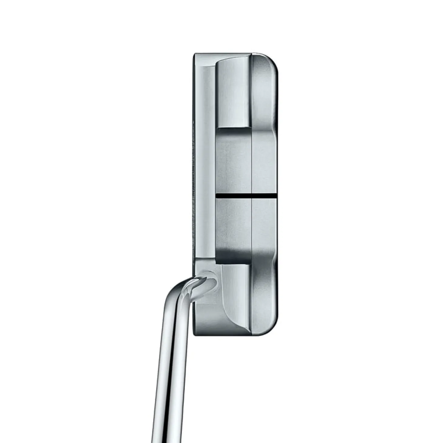 Catalina är precisionsfräst ur ett stycke 303 rostfritt stål och har en Studio Carbon Steel (SCS) insert i träffytan. Chain-link-fräsningen ger en jämn och förutsägbar bollrull, medan den bredare profilen jämfört med en traditionell bladputter ger en högre MOI (Moment of Inertia), vilket minskar vridning vid bollträff. Med ett mid-bend-skaft, som riktas rakt mot mållinjen, är Catalina nära face-balanced, vilket passar spelare som föredrar en mer neutral puttrörelse utan kraftig rotation i bladet. Den rena konstruktionen utan sulplatta ger en obehindrad vy över putterns framkant vid adressering, vilket gör det lättare att sikta och hålla linjen genom stroke.
