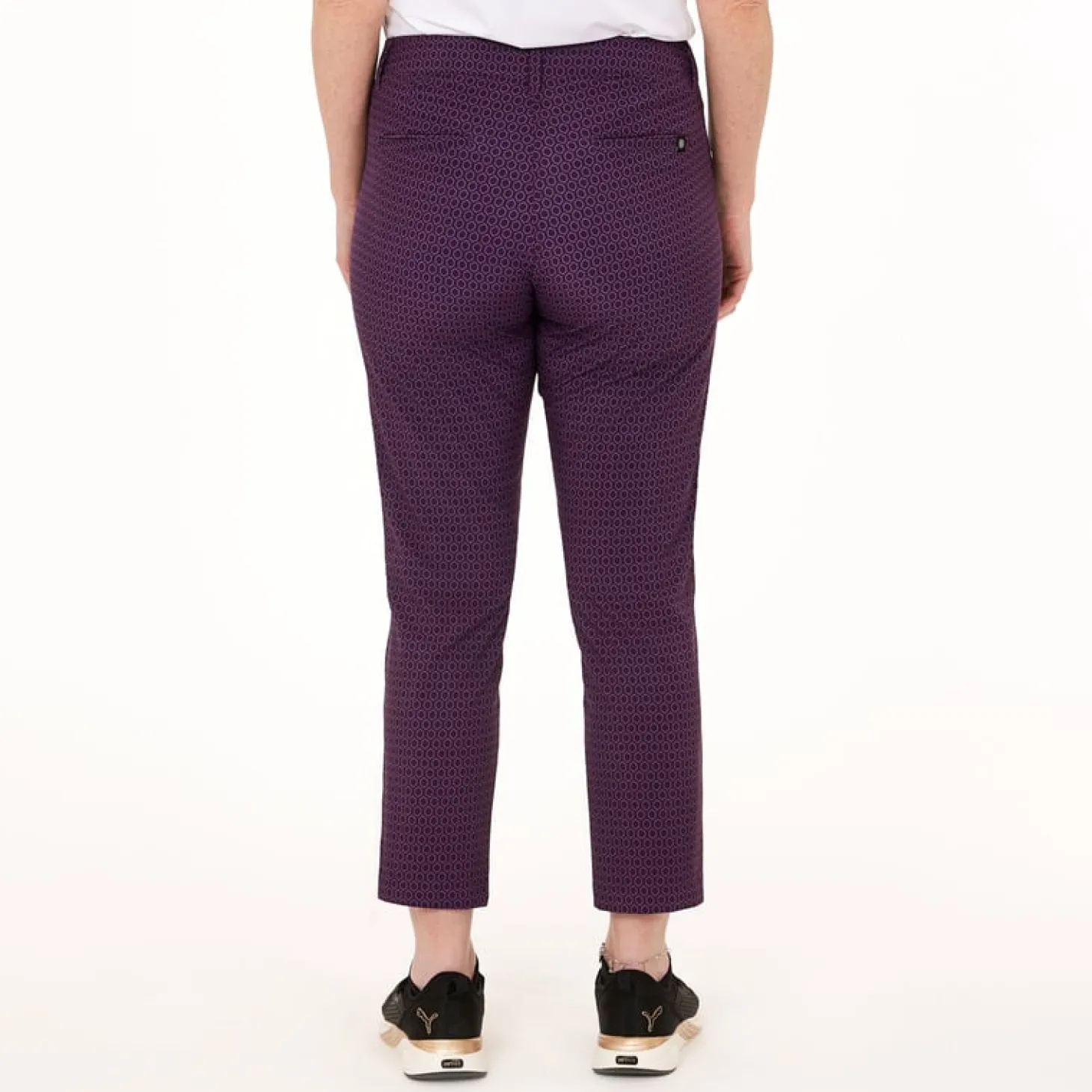Mönstrad byxa i en tunn och smidig stretch för maximal rörelsefrihet och komfort med bra andningsförmåga. Modellen har två framfickor, myntficka och två bakfickor. Passformen är regular i ankellängd. Innerbenlängd 67 cm i storlek 38. Material: 100% Polyester med mekanisk stretch, produkten är i mono-material (ett material) vilket är enklare att återvinna, behöver inte separeras.Digitaltryckt tyg, vilket innebär minimal vattenförbrukning vid tillverkning.