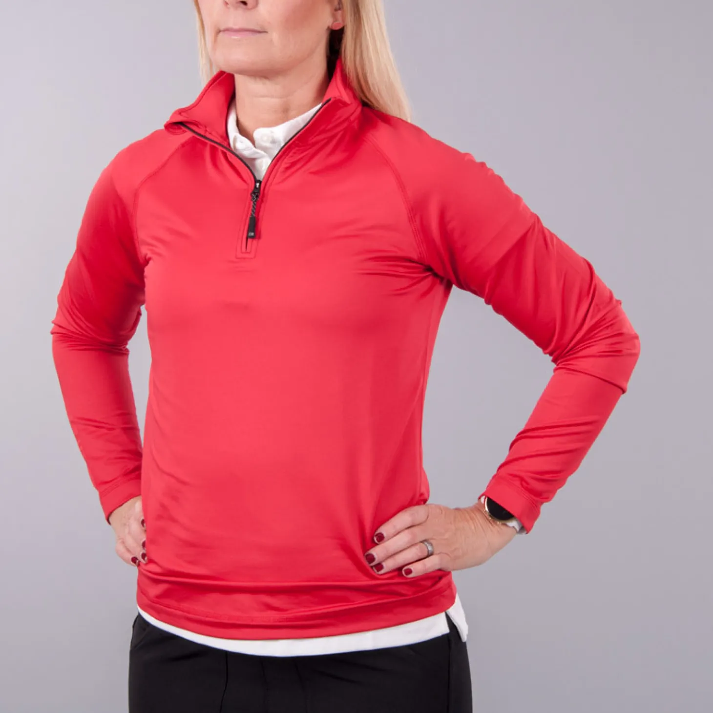 Långärmad tröja i mjukt tyg med borstad insida för att hålla dig varm. Dry Tec stretchtyg ger god rörelsefrihet. Används som en lager 2-tröja under en jacka eller som ett andra skikt över en piké. 100% polyester med UV-skydd. Modellen är 168 cm och bär storlek Medium.
