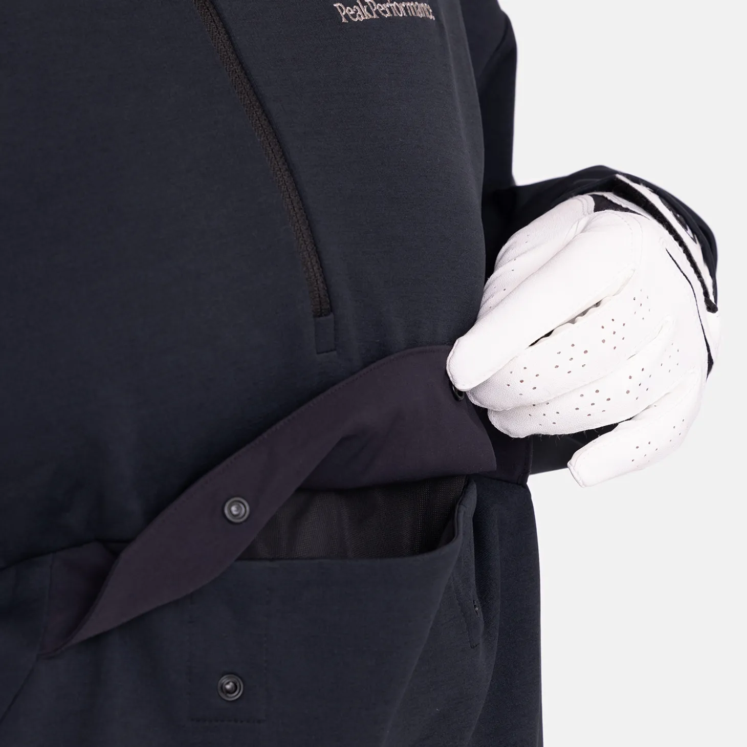 Den avslappnade passformen ger en följsam känsla under svingen, medan de praktiska fickorna med tryckknappar har gott om plats för mobiltelefon och andra tillbehör.Tack vare den packbara och lätta designen är jackan enkel att ta med sig, vilket gör den till ett perfekt extra lager för skiftande väder på golfbanan.