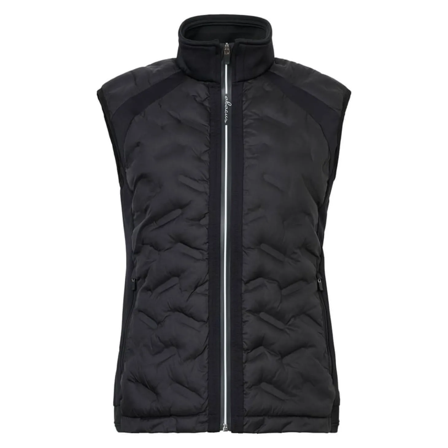 Portrush Hybridväst – det perfekta valet för extra värme samtidigt som du behåller full rörelsefrihet. Västen är ljusgrön, har en tidlös och sportig stil som passar lika bra både på som utanför golfbanan. Fram- och baksidan är tillverkade av ett vindtätt tyg med sömlöst quiltade paneler och lätt vaddering för extra värme. Sidorna består av ett mycket stretchigt fleece-material med en mjuk, borstad insida. Samma stretchiga och andningsbara fleece finns även under axlarna fram och bak, för att maximera rörligheten i svingen. Designen kompletteras med en integrerad Abacus-logga på den vindtäta dragkedjan framtill, sidofickor med dragkedjor och ribbade muddar vid ärmslut och krage.