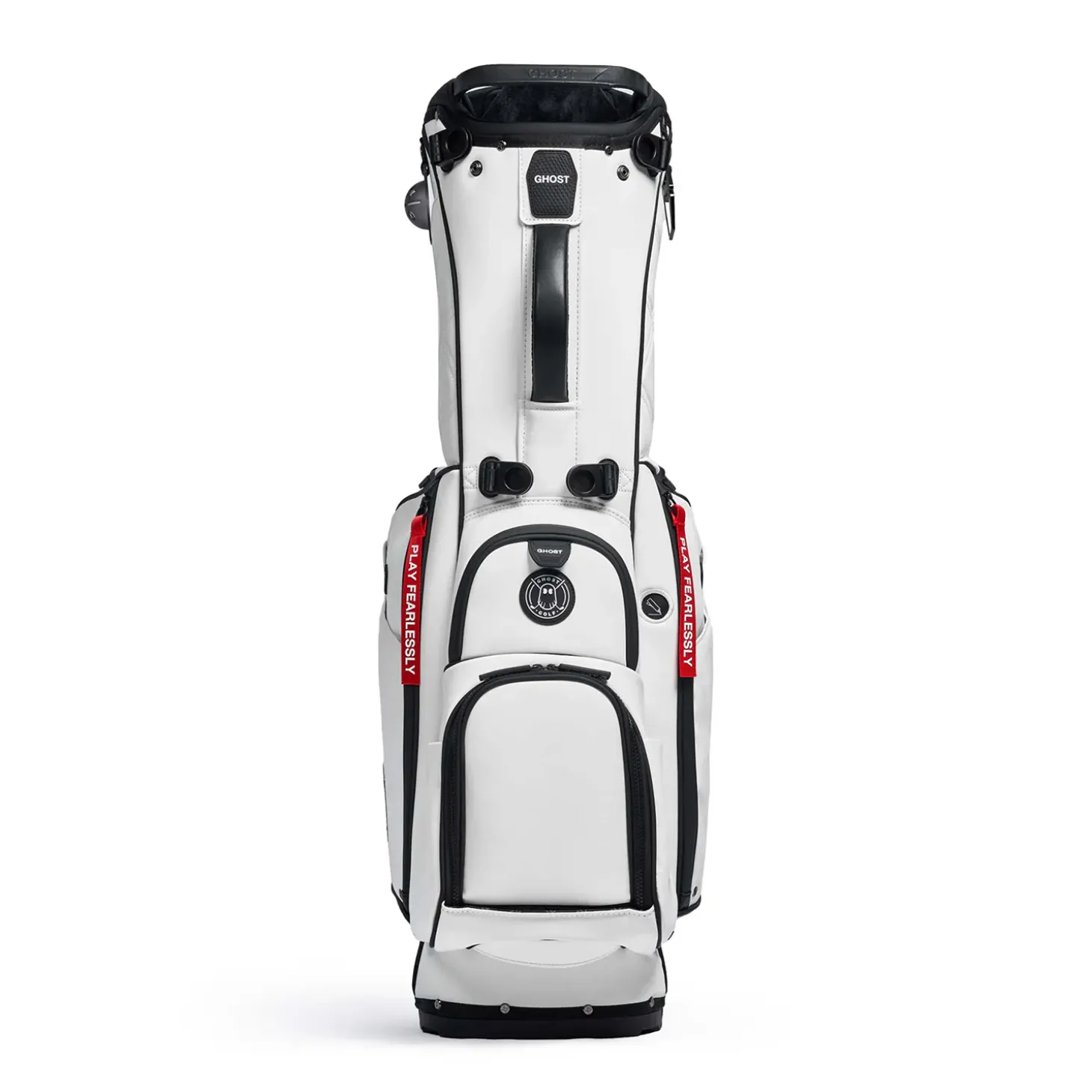 Tillverkad i slitstarkt premium PU-läder med kolfiberben ger den ett elegant och robust intryck. Den 7-delade toppen med sammetsklädda fullängdsavdelare skyddar dina klubbor, medan det extra stora putterfacket rymmer även tjockare grepp. Bagen har både enkel och dubbel bärsele som enkelt kan justeras eller bytas beroende på hur du vill bära den. De magnetiska fickorna ger snabb åtkomst till din avståndsmätare, och flera kylfodrade fack håller dina drycker kalla under rundan.Ghost Anyday erbjuder dessutom gott om utrymme för värdesaker och tillbehör, inklusive avtagbar bollfickspanel för personlig brodyr. En stilren bag för dig som vill ha allt – funktion, komfort och förstklassig design i ett.