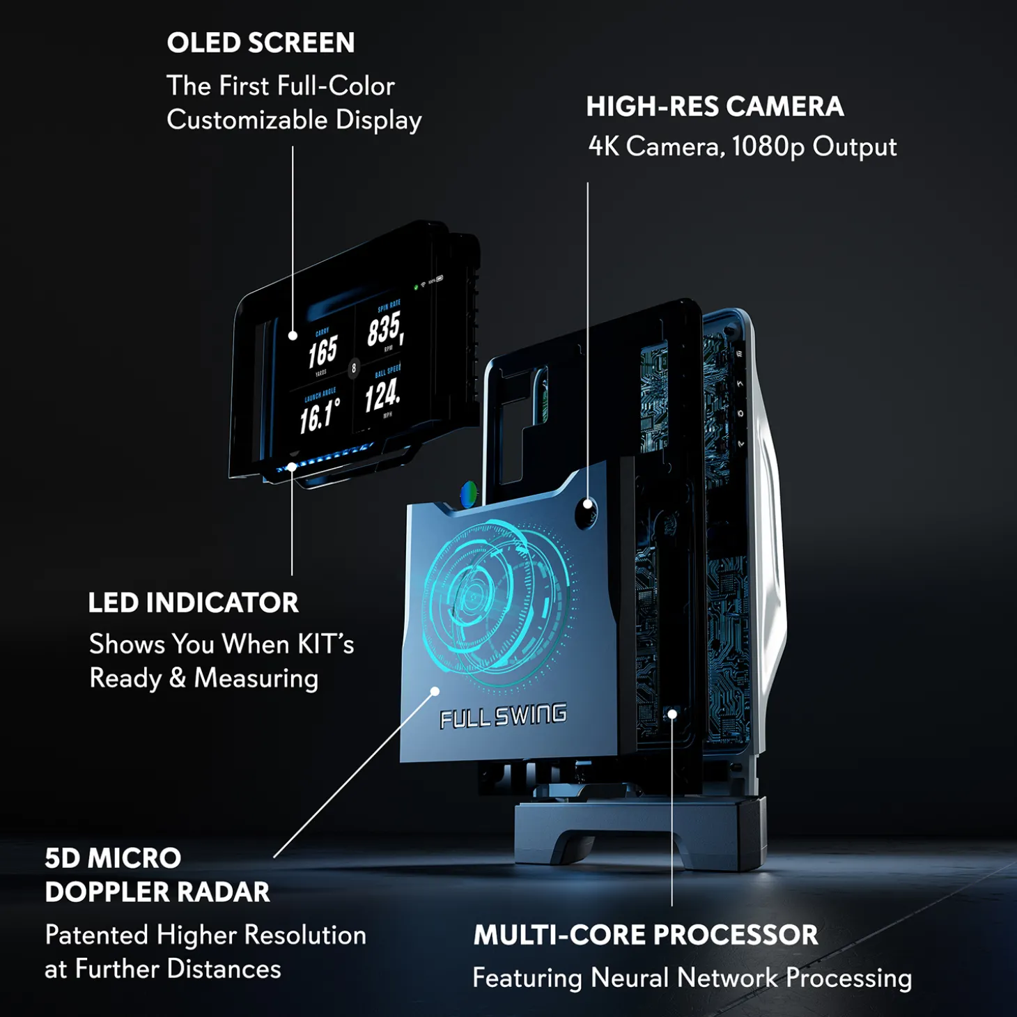 KIT är kompatibel med en mängd träningsmiljöer och erbjuder en flexibel lösning för både inomhus- och utomhusträning. Enheten har en robust konstruktion och är lätt att installera, vilket gör att du kan använda den oavsett om du tränar hemma, på rangen eller på golfbanan. Med lång batteritid och bärbar design kan den enkelt transporteras och användas var du än befinner dig.En av de mest imponerande funktionerna i Full Swing KIT är dess integrerade höghastighetskamera som fångar varje slag i HD-kvalitet. Detta gör det möjligt för användaren att se sitt slag i detalj och analysera varje aspekt av sin teknik, vilket kan vara avgörande för att förbättra spelet. KIT kan användas tillsammans med Full Swings app, som ger användaren omedelbar feedback och en komplett översikt av data för varje slag. Appen är enkel att använda och erbjuder användaren ett intuitivt gränssnitt för att följa sin utveckling över tid. Förutom den tekniska analysen erbjuder KIT tillgång till över 500 virtuella golfbanor, vilket gör att spelare kan öva på realistiska banor från hela världen utan att lämna sitt hem. Detta är särskilt värdefullt för spelare som vill träna på specifika banor inför tävlingar eller förbättra sitt spel på olika typer av hål och underlag. Möjligheten att spela virtuella rundor gör träningen både rolig och givande, samtidigt som den håller motivationen uppe. KIT Launch Monitor har blivit populär bland professionella golfare tack vare dess höga noggrannhet och avancerade funktioner, men den är även ett utmärkt verktyg för golfare på alla nivåer. Den är enkel att använda och kräver minimal uppsättning, vilket gör att golfare snabbt kan komma igång med sin träning. För golfare som tar sitt spel på allvar och vill förbättra sin teknik är Full Swing KIT ett ovärderligt verktyg som ger detaljerad insikt i varje aspekt av slaget. Full Swing KIT har också en flexibel design och är kompatibel med flera simulatorplattformar och träningsappar. Detta gör att användaren kan välja de program som passar bäst för deras träningsmål och behov. Genom att kombinera KIT med olika appar kan golfare skräddarsy sin träning och få maximal nytta av den data och feedback som enheten erbjuder. Enheten är även uppdateringsbar, vilket innebär att Full Swing kontinuerligt förbättrar programvaran och funktionerna för att säkerställa att användarna får den senaste tekniken och bästa möjliga upplevelse