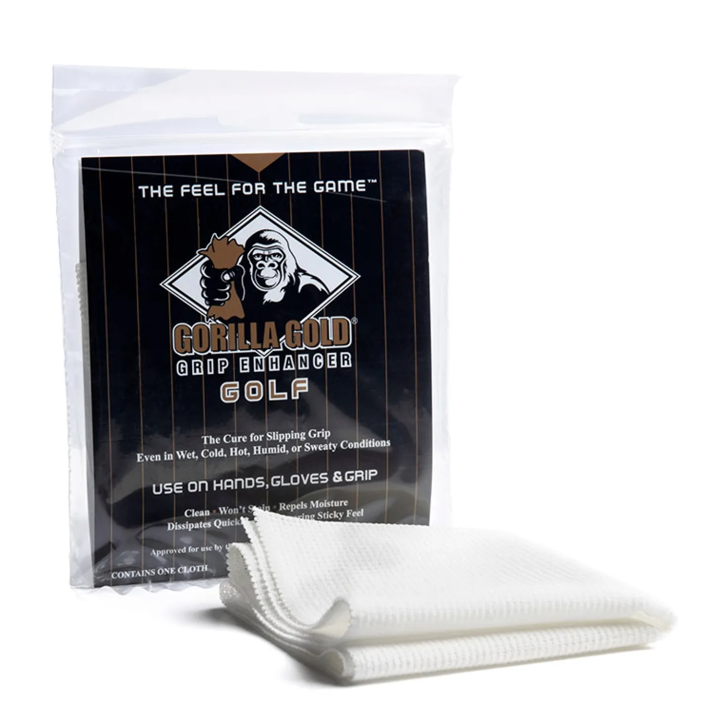 Gorilla Golf följer USGA och deras regelverk, samt är godkänt för användning av R&A. Gorilla Golf är gjort av enbart naturliga ingredienser som ger dig den unika klibbiga känslan, den är ren och doftar inte, och försvinner från dina händer inom några minuter efter användning. Gorilla Gold rengör ditt grepp genom att ta bort smuts och oljor. För enkel och längre hållbarhet lägg den i zip påsen efter användning.Dukstorlek 45 x 24 cm