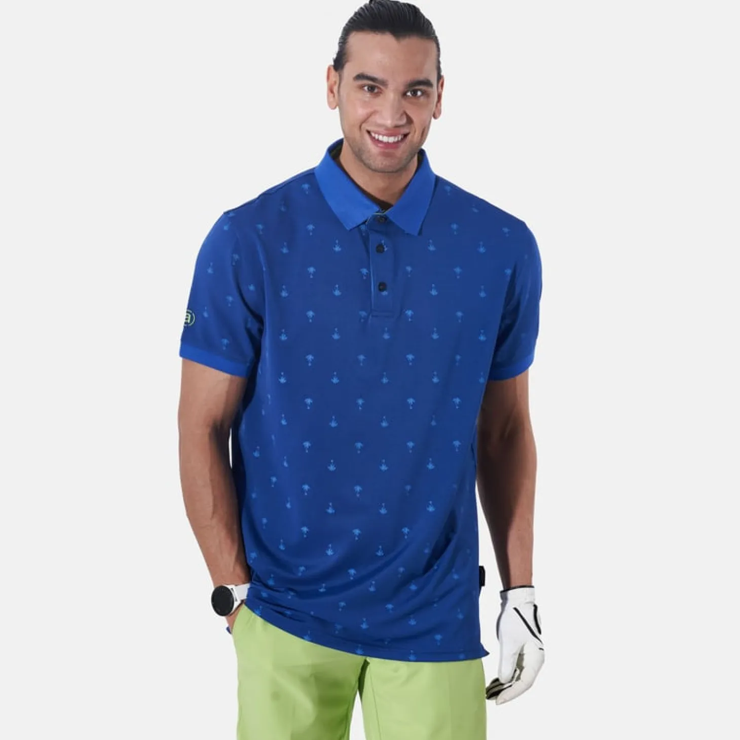Hankley piké är tillverkad i en stretchig polyesterblandning. Klassisk krage som har en insida i kontrastfärg. Pikén är småmönstrad med palmer, både på fram och baksida. Abacus logga på höger ärm som är broderad i samma färg som insidan på kragen. Material: 96% polyester, 4% spandex.
