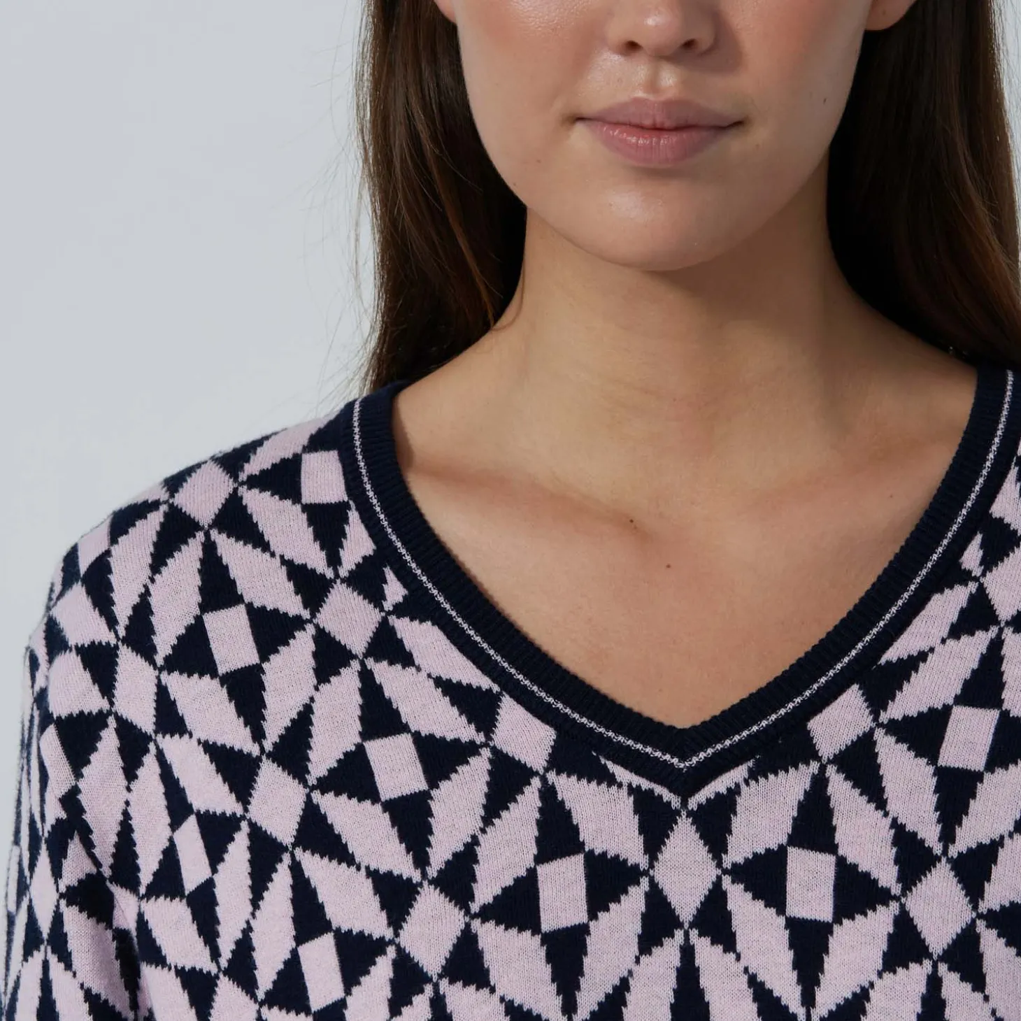 Denna grovstickade tröja kombinerar tidlös design med hög komfort. Tillverkad i ett mjukt bomullsmaterial med jacquardstickade ränder för en elegant look. Den v-ringade modellen ger en klassisk touch, medan ribbstickade detaljer vid hals, ärmslut och nederkant säkerställer en perfekt passform. Ett stilfullt och mångsidigt plagg – lika snyggt på golfbanan som till vardags.