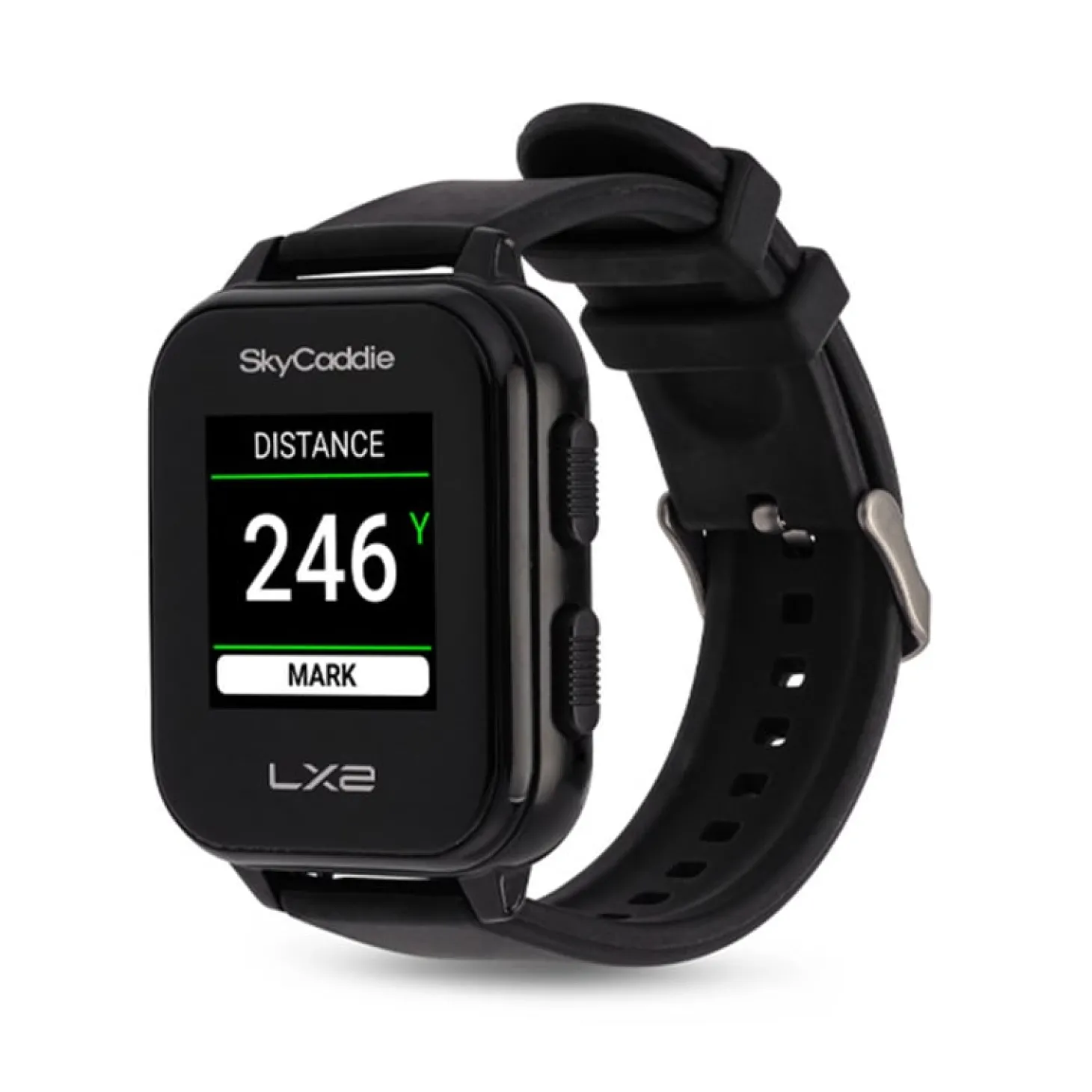 SkyCaddie LX2 har en lätt och modern design som gör klockan både snygg och bekväm att bära när du spelar. Hög läsbarhet i solljus kombinerat med tydliga och stora siffror ser till att du får rätt information. Klockans skärm styrs med en pekfunktion likt en smart phone. Skärmen har en storlek på 1.28 tum (3.25 cm). SkyCaddie LX2 ger dig möjlighet att föra digitalt scorekort direkt på din handled, mäter din slaglängd och dynamiska avstånd till mål och hinder. Klockan är utrustad med flera smarta funktioner som är användbara även utanför golfbanan, så som stegräknare, stegmål, alarm och timer.