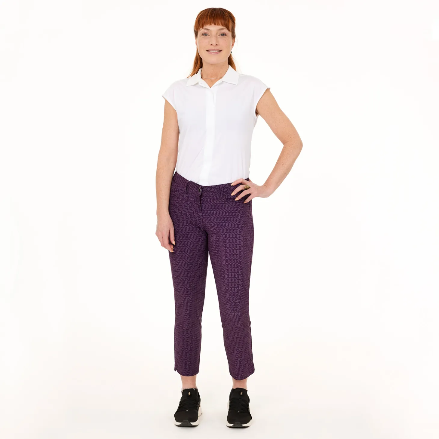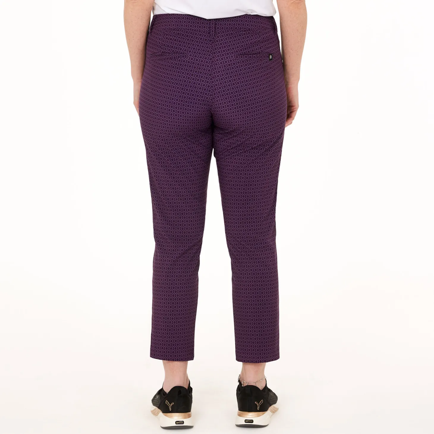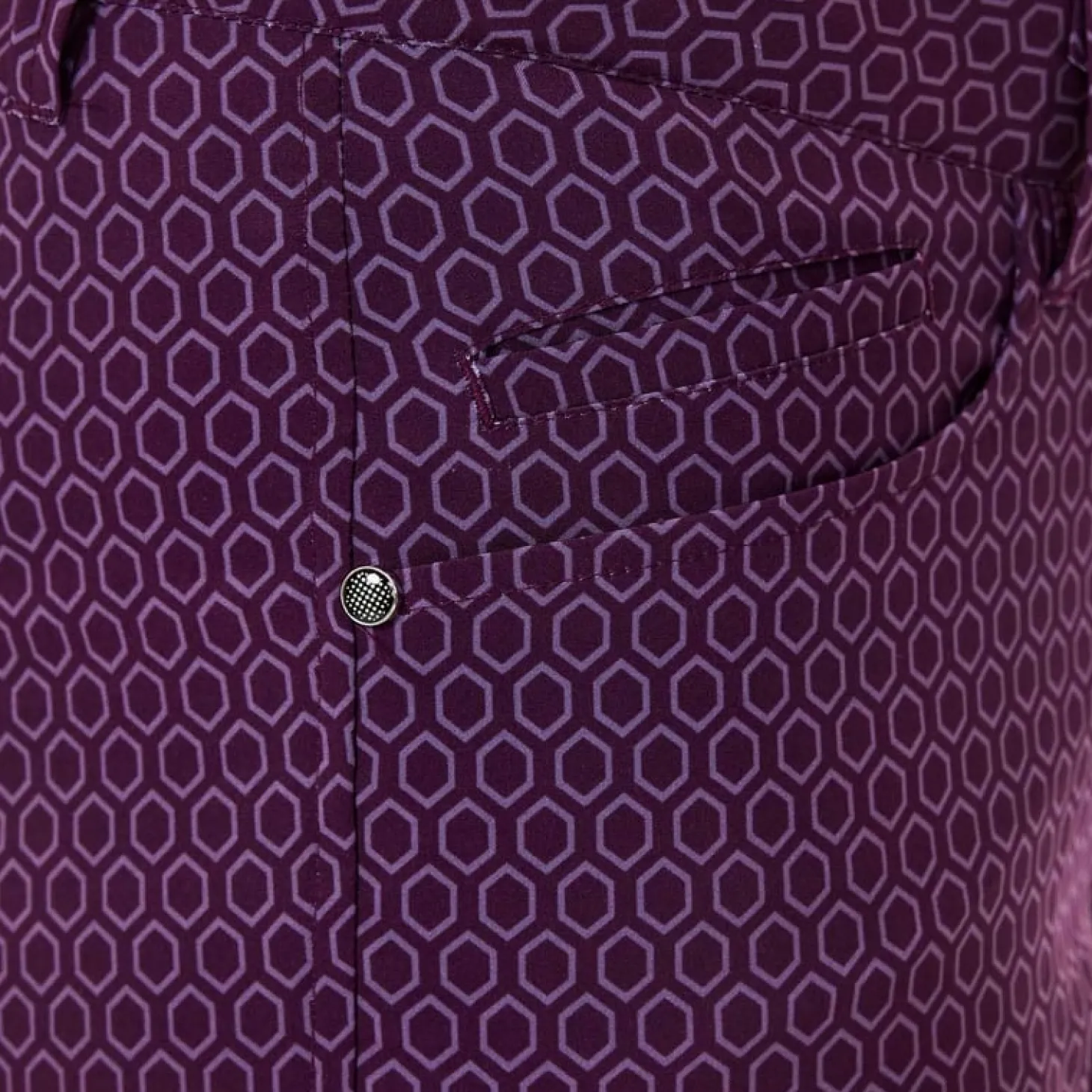 Mönstrad byxa i en tunn och smidig stretch för maximal rörelsefrihet och komfort med bra andningsförmåga. Modellen har två framfickor, myntficka och två bakfickor. Passformen är regular i ankellängd. Innerbenlängd 67 cm i storlek 38. Material: 100% Polyester med mekanisk stretch, produkten är i mono-material (ett material) vilket är enklare att återvinna, behöver inte separeras.Digitaltryckt tyg, vilket innebär minimal vattenförbrukning vid tillverkning.